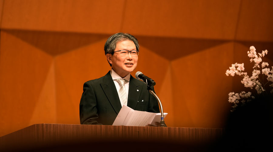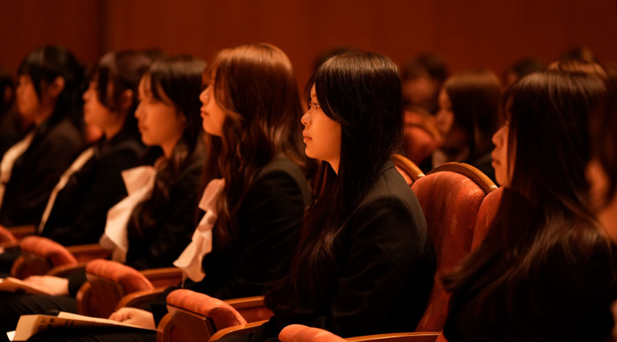岸本 秀一学長からの式辞では2年間を最高のものにするための3つの心構えについて述べられ、「1つ目は『まず動く、小さく試す』こと。失敗を恐れず、一歩踏み出してほしい。2つ目は『個を磨き、チームで成す』こと。自分の強みはもちろん、多様な仲間や教職員と協働する喜びを知ってほしい。3つ目は『言葉が未来をつくる』こと。前向きな言葉は組織の空気を整え、個人の人生をも変えていきます。今日から一緒に、最高にワクワクする物語を始めていきましょう」といった言葉が贈られました。