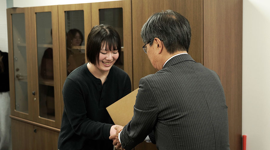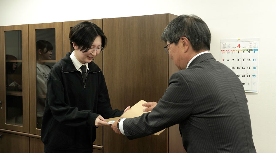今回このような賞をいただけたことをとても嬉しく思います。授業外の時間も活用しながらコツコツと学習を続ける中で、少しずつできることが増えていく実感がありました。アプリでの練習では結果が数字で見えるため、成長を実感しやすく、やる気の維持にもつながりました。MOS取得を通して得た知識は、日々の課題や資料作成にも活かせており、将来の仕事でも大きな強みになると感じています。今後も得たスキルを活かして成長していきたいと思っています。