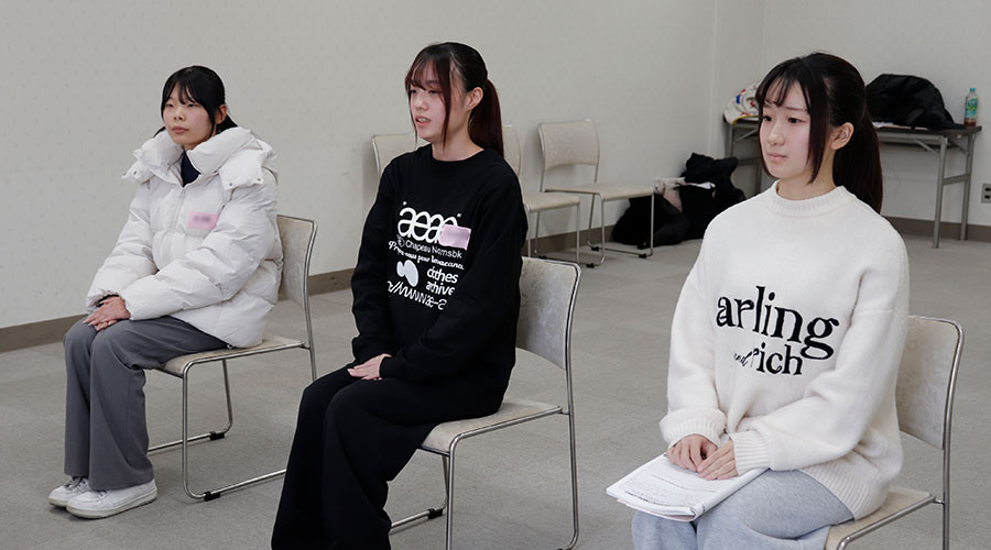 集団模擬面接では、先輩アドバイザーの模擬面接を参考にしながら、全員が真剣に取り組みました。互いによかった点やもっとよくなるところを伝え合うことで、多くの気づきを得る機会となりました。