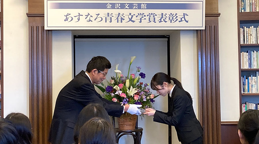 1年次前期必修科目「クラスコミュニティ」において、国語表現を専門とする山田範子教授が担当した授業回で学生が創作した詩を「第20回あすなろ青春文学賞」(詩部門)に応募したところ、本学1年次3名が受賞しました。