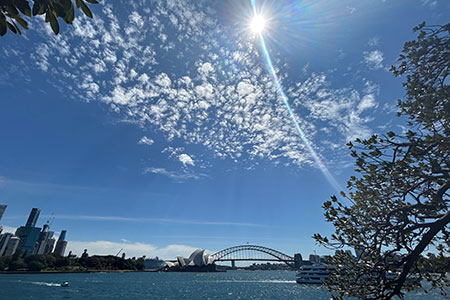 こちらは、昨年2月に海外研修でオーストラリアに行った際、ホストファミリーと一緒に現地を歩いた時の写真です。オーストラリアのシンボルであるオペラハウスを実際に見た時は「本当に海外に来たんだ…!」と改めて感じました。現地は夏だったので、北陸の冬空とは違い、気持ちの良い青空が広がっていたのもとても印象的でした♪