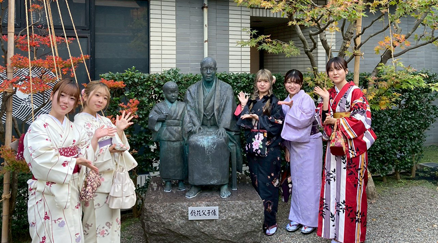 この日は着物をまとって鏡花ゆかりの街並みを歩き、鏡花が生きた時代の空気を体感的に味わいました。