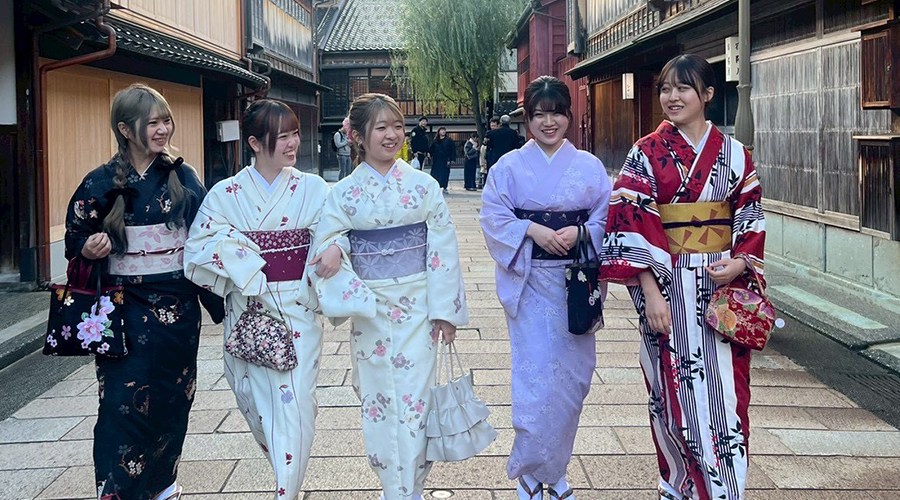 ゼミのみんなと着物姿で金沢の街を巡り、楽しい時間を共有できたことで、さらに仲を深めることができました。