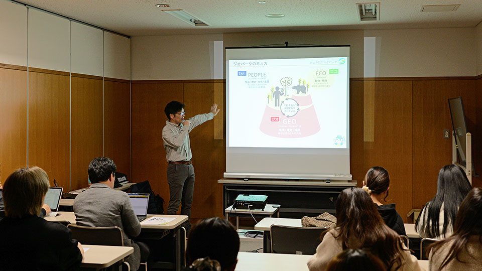 「ジオパーク」について解説する日比野さん