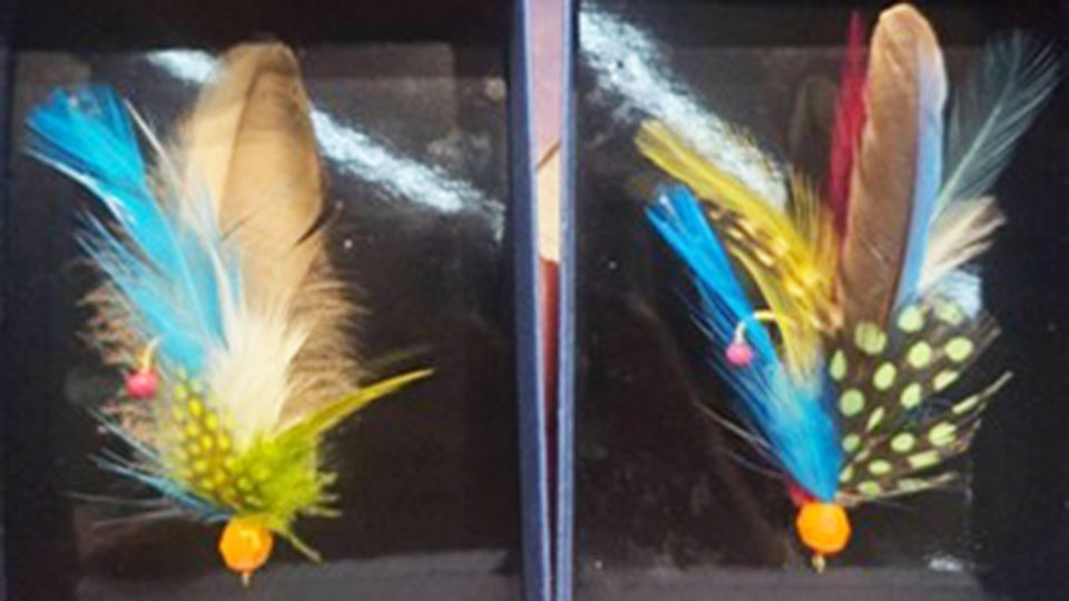 今回お伺いした商店は450年という長い歴史を持っています。毛針とは本来釣りに使われる擬似餌の一つで、鳥の羽や動物の毛、糸を組み合わせて作られています。色や見た目、大きさや形など様々な種類の毛針があり、とても繊細な作業をしていることが感じ取ることができました。