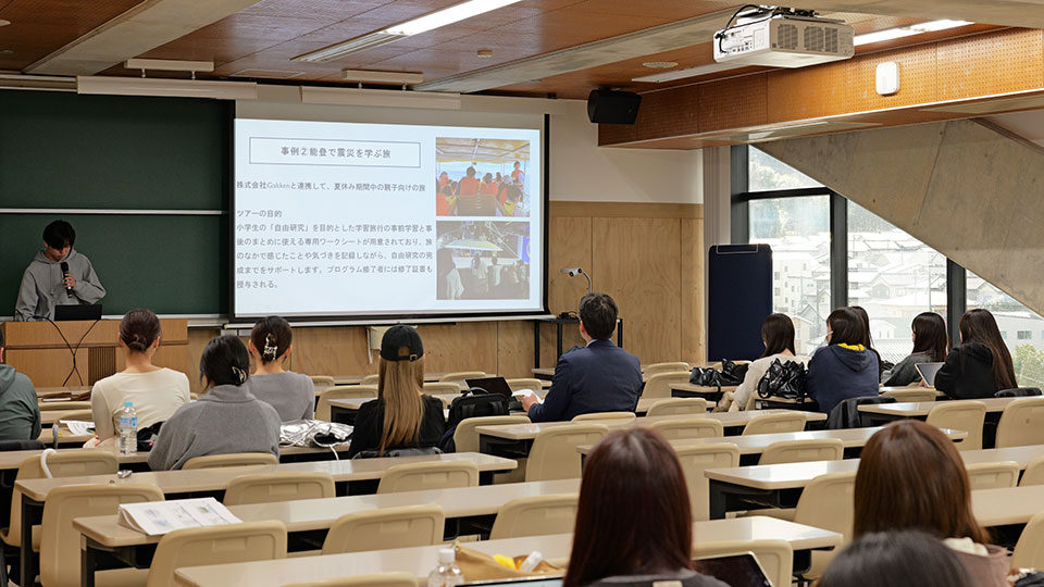 3班目は、能登地域の震災以前から続き、そして震災以降に加速した「子育て世代の流出」という課題に対し、『株式会社丸一観光』の資料にある原因や要望を参考にしながらの企画提案を行いました。既に開催されているワークショップや地域復興イベントを深掘りした結果から最適と判断した企画は、復興ボランティアと観光を掛け合わせた「復興ツアー」の開催で企業や団体の協力を得る仕組みや、参加者による任意の応援金やクラウドファンディングも含めた資金調達など、運営面についての具体策も示しました。木下専務は綿密な調査に基づく案から多くの発見を得た様子で、「身の引き締まる思いを抱いた」とのコメントを寄せました。