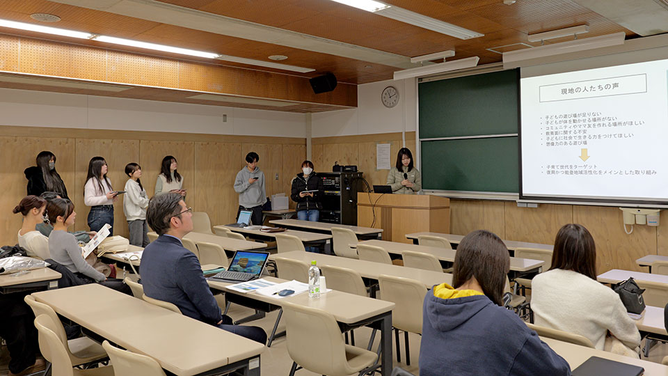 今後、2月の全体発表会に向けた最終調整を行うため、講義の残り時間は翌週に実施する他ゼミとの合同発表の場に向けてのグループディスカッションが行われました。