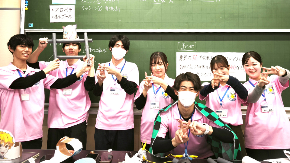 小学校教員を目指す学生たちがチームで教材を工夫し、子どもたちの「なぜ?」「どうして?」という疑問を大切にしながら、科学的に考える力を引き出すことを目指しています。