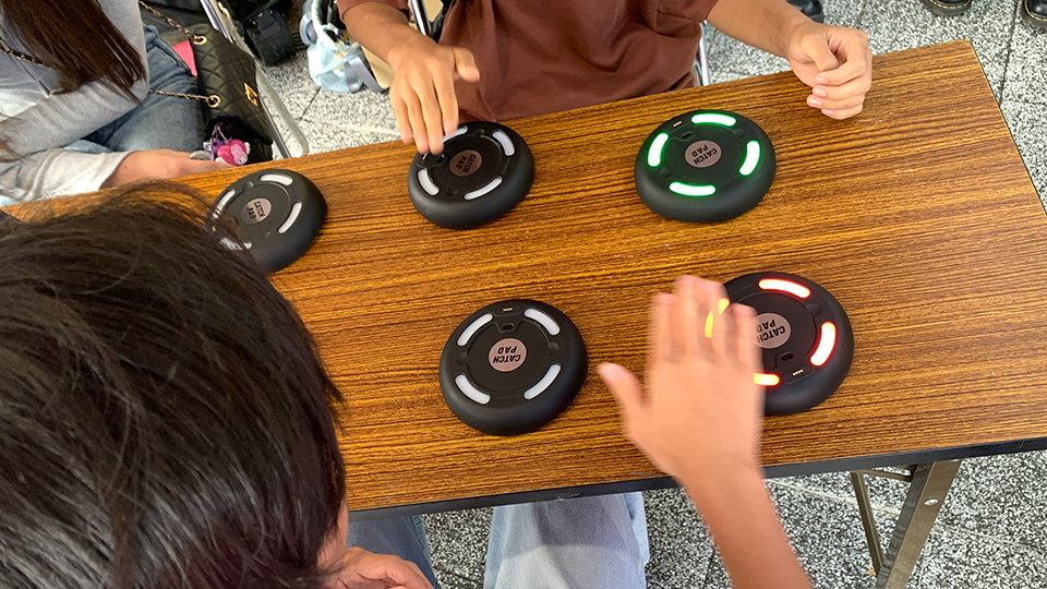 イベント当日、新ゼミのメンバーは他プロジェクトでも実例と実績のある「SDGs」の取り組みに焦点を当てた店舗紹介を絡める形で、会場内13か所の「SDGsスタンプラリー」会場の企画運営を担いました。井川ゼミのメンバーはスポーツ学科として取り組み実績のある「反応速度・バランス測定」の出張ブースの企画運営を担当し、2年生は就職活動との並行、1年生は入学したてという背景から企画からの参加が難しかった辰巳ゼミのメンバーは井川ゼミのサポート役として当日に臨みました。