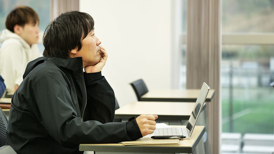 舘さんは発表を終えたゼミ生に対し、資料のまとまりと着眼点を称賛した上で「ジオパーク」をテーマに選んだ経緯と白山市の有機農産物を広めるというゴール地点をより明確に示し、現状の白山市の取り組みが「ジオパーク」の主旨や目的に合致しているかをより掘り下げる必要があるなどといった、より課題の本質に近づくためのアドバイスを送りました。そして今後の取り組みとして、白山市役所「ジオパーク・エコパーク推進課」への調査訪問を推奨し、ゼミ生の日程を調整したところで、この日のスケジュールを終えました。