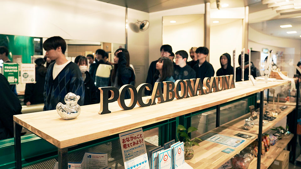 神﨑ゼミナールの神﨑教授と2年次16名が、野々市市御経塚の銭湯『pocapoca御経塚の湯』を訪問しました。地域の企業が抱える課題の解決を通して地方創生の在り方を学ぶ「いしかわ共創インターンシップ」の3回目の取り組みとなった今回は、前回3年次が取材した内容をふまえ、2年次の学生たちが新たな視点で提案や改善策を模索する場となりました。