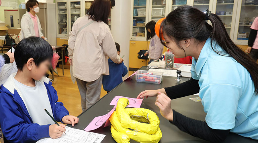 今回の科学教室は準備期間が少なかったので、外部イベントで行った実験テーマをブラッシュアップして実施しました。会場となった実験工房は広さが限られており、さまざまな実験器具もあるので自由に動き回るには注意が必要なのでは、という意見もありましたが、注意が必要な場所には学生を配置して子どもたちを見守ったり、保護者の方々のご協力もあって2日間安全に実施できました。昨年もワクワク科学教室を開催したのですが「昨年おもしろかったので今年も来ました」「ワクワク科学教室のためだけに来ました!」というご家族の方もいて、とても嬉しかったです。