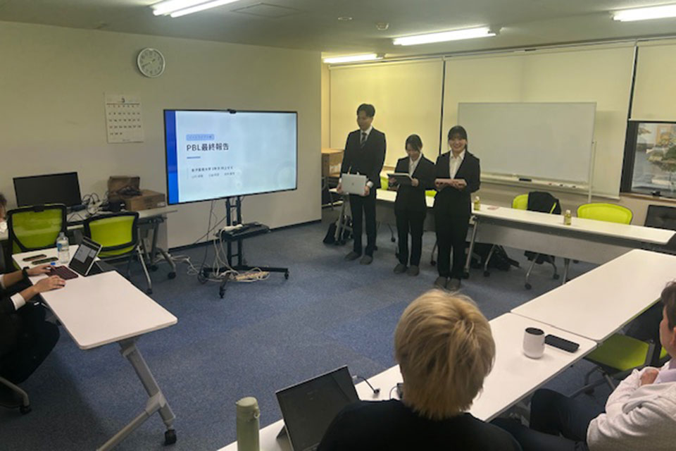経済学部経営学科の村上ゼミナール(3年次)では、教室内で得られる知識を現実の課題に接続し、分析と提案の往還を通じて学びを深化させる実践体験型PBL(Project Based Learning)に取り組んでいます。このたび、株式会社イー・トライアド(石川県金沢市、代表取締役社長 山辺英洋氏)のご協力のもと、約半年間にわたる産学連携プロジェクトの最終報告会を実施しました。