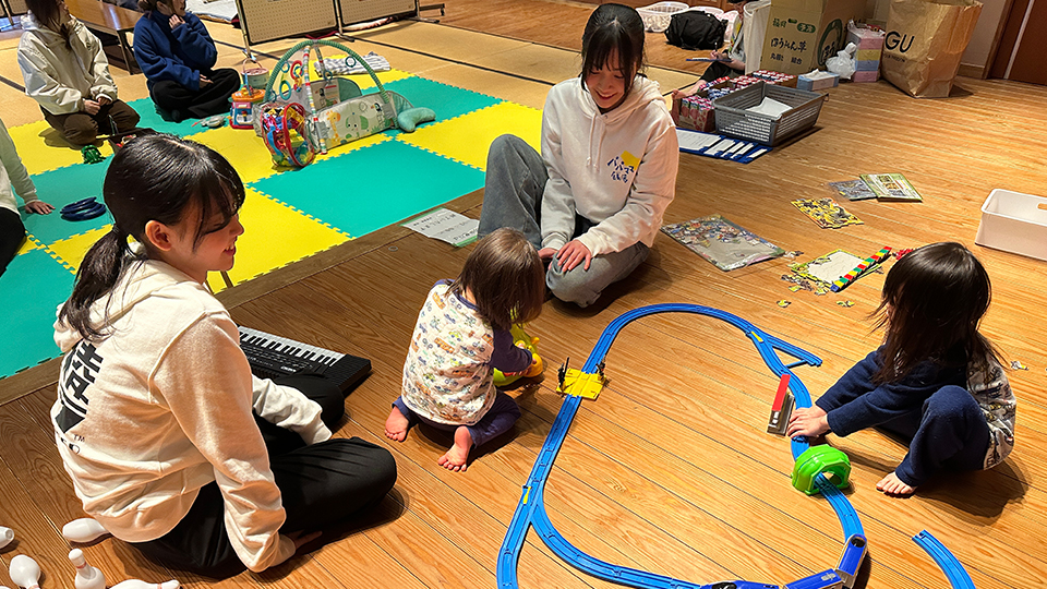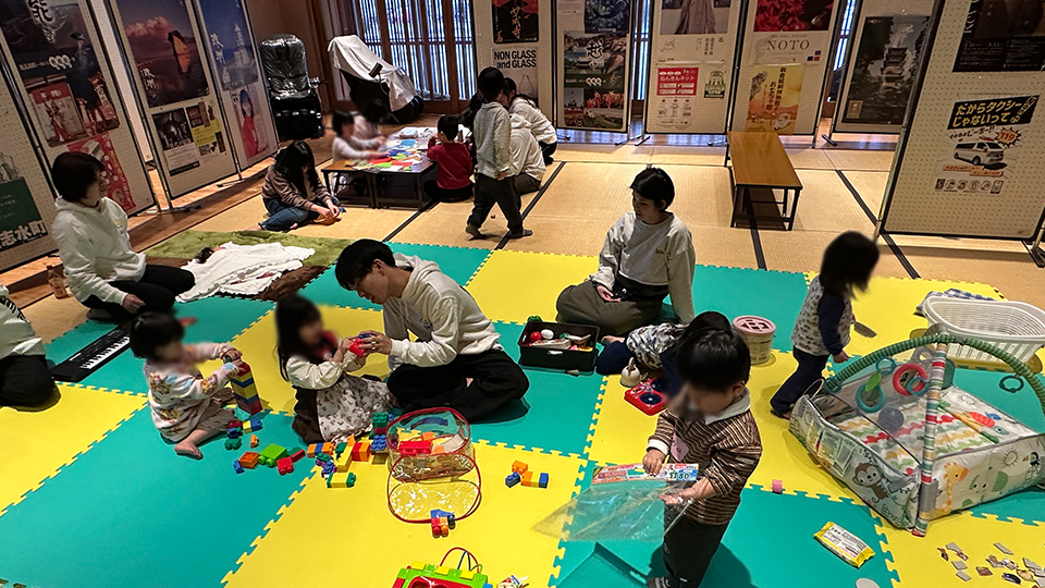 開催にあたっては、学生たちが七尾市内の幼稚園・保育園17施設を訪問し、約800世帯へ周知活動を実施しました。その結果、当日は約20世帯(保護者40名、子ども30名)が来場し、会場は多くの家族で賑わいました。